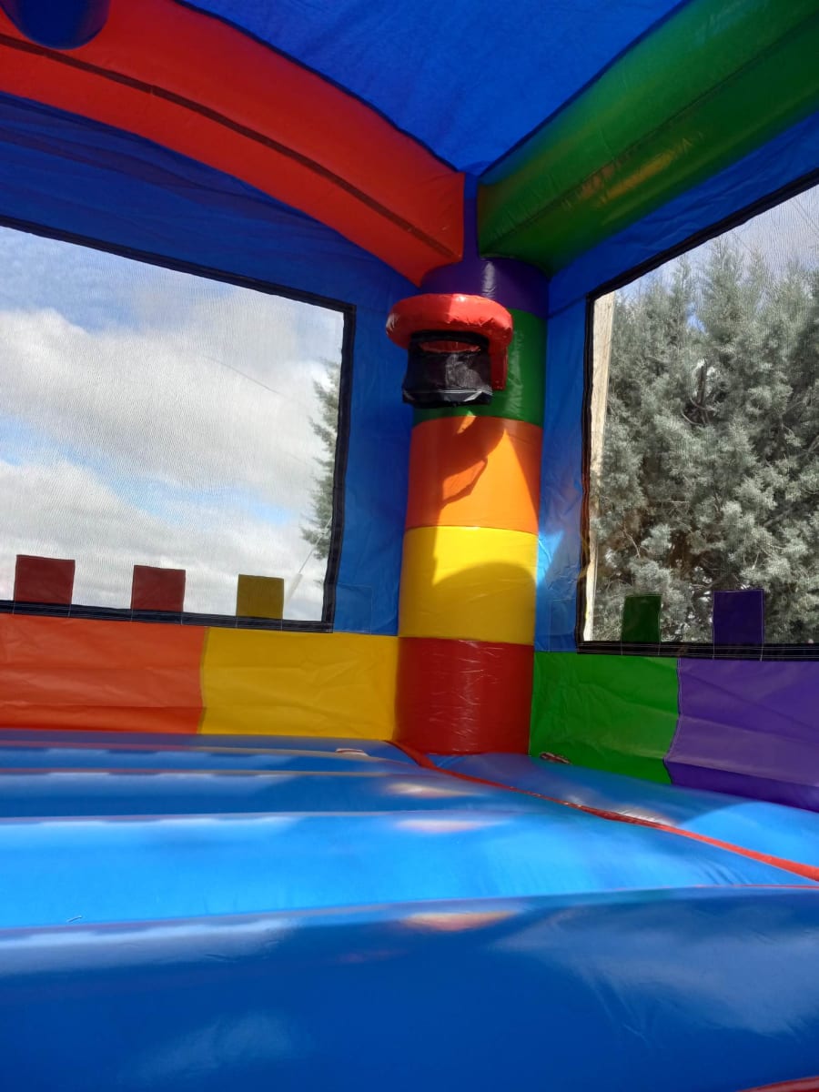 Jump into the fun with our 15x15 Block Bounce House! Perfect for any event, it features a block-themed interior and built-in hoop for added entertainment. Made with top-quality materials and regularly inspected, it's safe and durable for all. Book now for a bouncing good time!