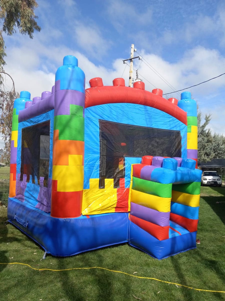 Jump into the fun with our 15x15 Block Bounce House! Perfect for any event, it features a block-themed interior and built-in hoop for added entertainment. Made with top-quality materials and regularly inspected, it's safe and durable for all. Book now for a bouncing good time!