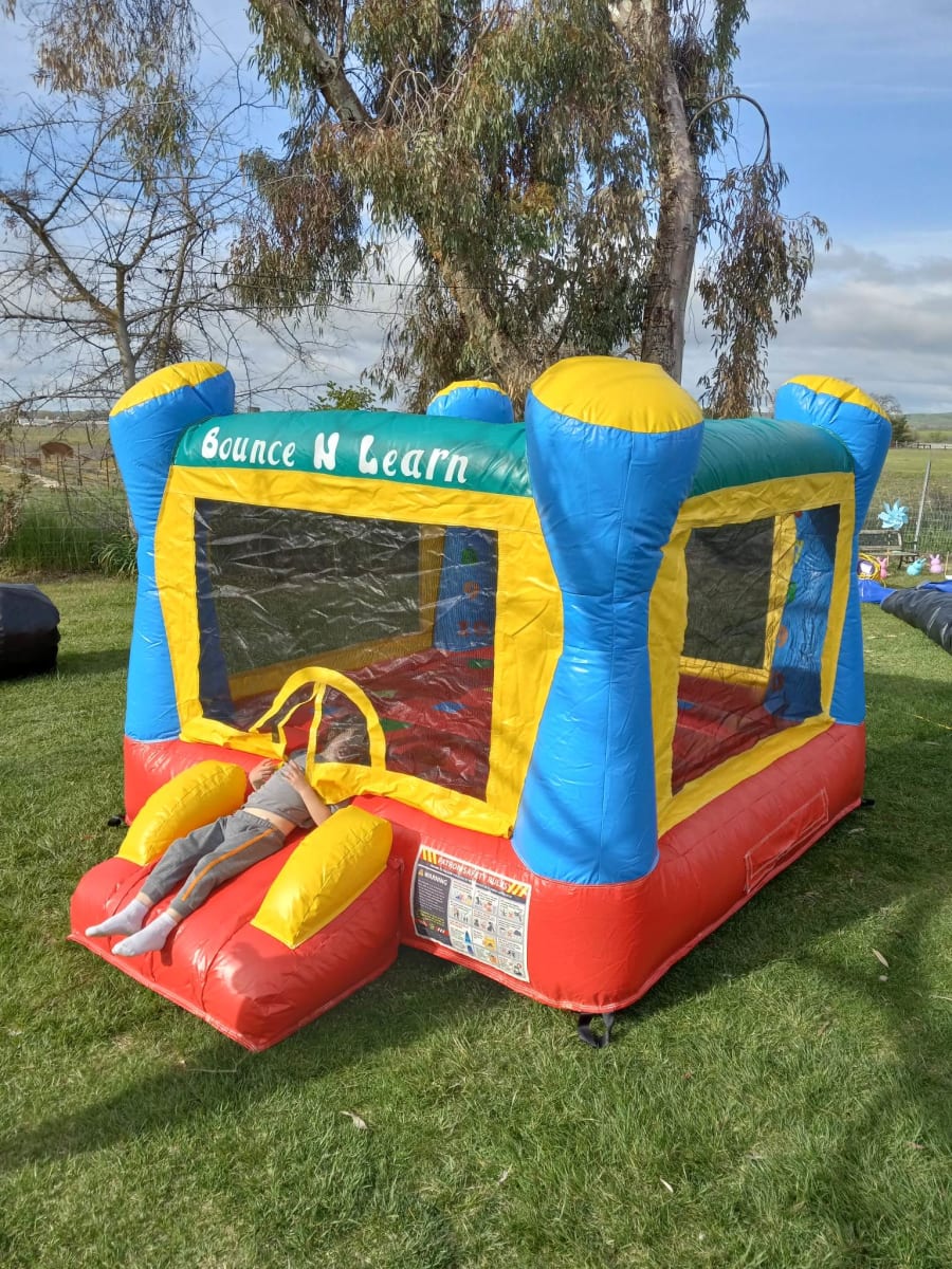 This 8'W x 10'L x 6'H Bounce N Learn Bounce House is the perfect combination of fun and educational experience for kids. The Bounce N Learn bounce house is a small compact inflatable that is great for backyard and indoor residential use for the younger ages. This colorful inflatable features the Alphabet, Numbers 1-10, colors, and shapes for kids to bounce around and learn at the same time!