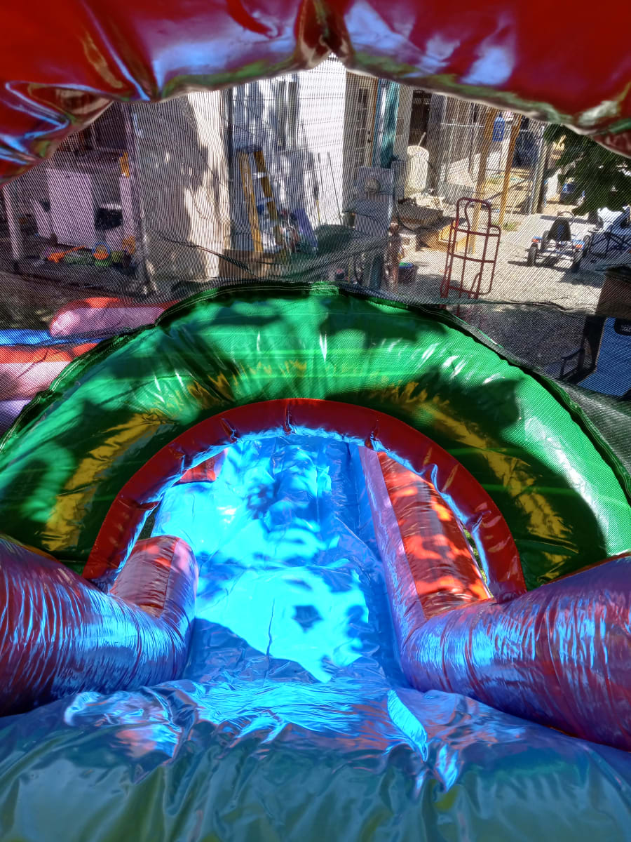 The Castle Water Slide Combo is the perfect bounce house for any time of the year! Great for any Summertime event or party, this combo jumper comes with a water slide making it fun for anyone. The Castle combo has a basketball hoop, a rock-climbing wall, a Slide which can be used wet or dry and an inflated pool area. The combo also has a new safety tunnel to enter the jumper and a safety net at the top of the slide. No cancellation fees and pay at delivery.