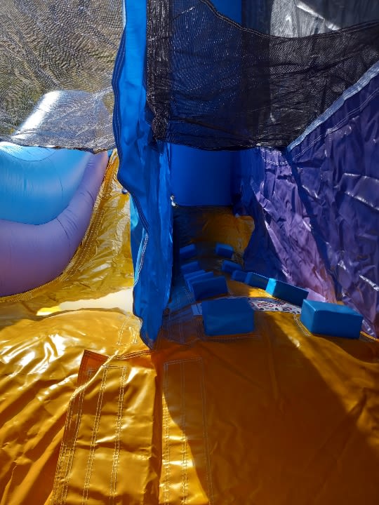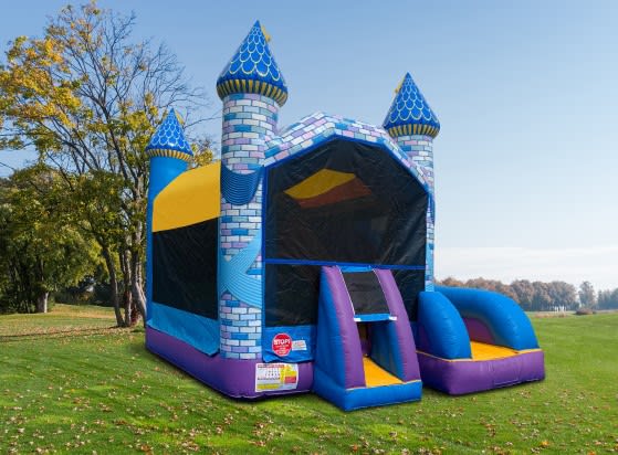 Our Brick 5-in-1 features all kinds of fun activities such as a huge moonwalk area, a crawl-through, climbing obstacle, slide, basketball hoops, and a game mat sewn onto the bouncer surface! Mesh netting comes standard, and the 5-in-1 Bouncer Combo is made with a unique space-saving design that leaves more than enough room for kids and adults to play inside. No cancellation fees and pay at delivery. Width