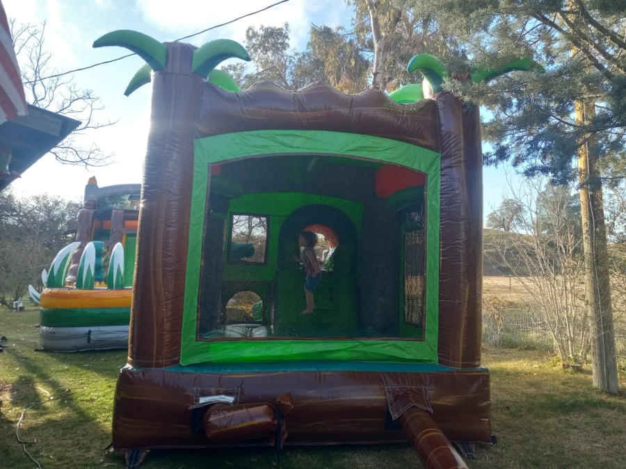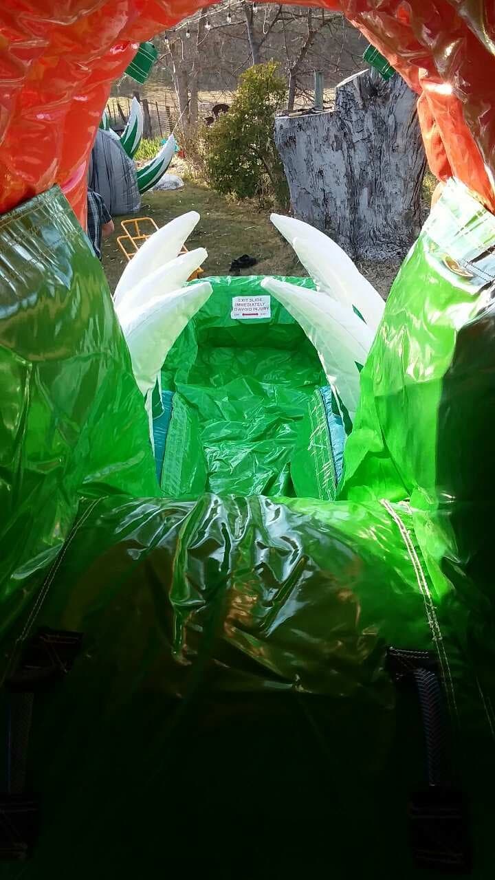 Introducing the Dino Dive Slim Line Combo. This combo is great for young ages! This combo comes with a bounce area, basketball hoops, climbing wall, and a single lane slide that can be a water slide! Includes pool and bumper. No cancellation fees and pay at delivery.