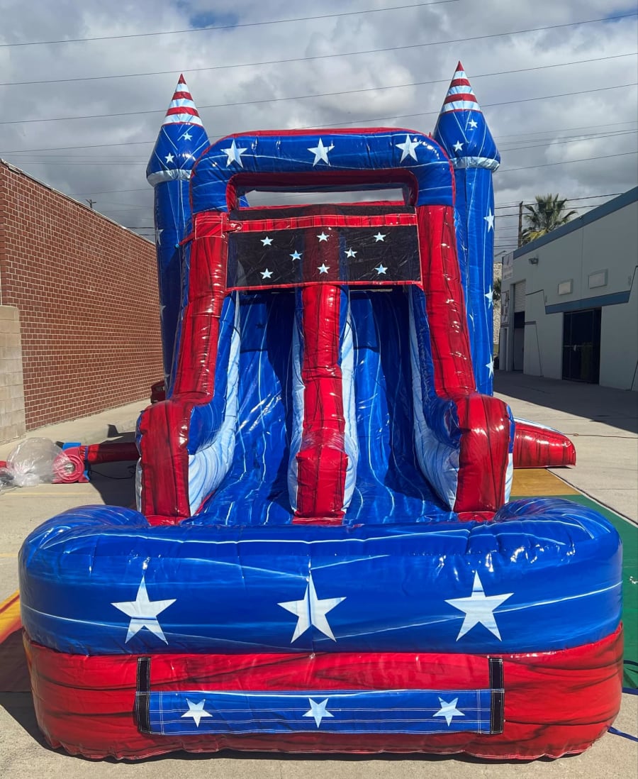 The Patriot Combo Wet/Dry is a versatile inflatable bounce house and slide combo designed for ultimate fun and flexibility. This unit features vibrant patriotic colors and can be used both wet and dry, making it perfect for any event, rain or shine. The spacious bounce house provides plenty of room for jumping, while the attached slide can be transformed into a water slide for cooling off on hot days. Durable and safe, it’s ideal for parties, events, or just backyard fun, providing hours of entertainment for children and adults alike.