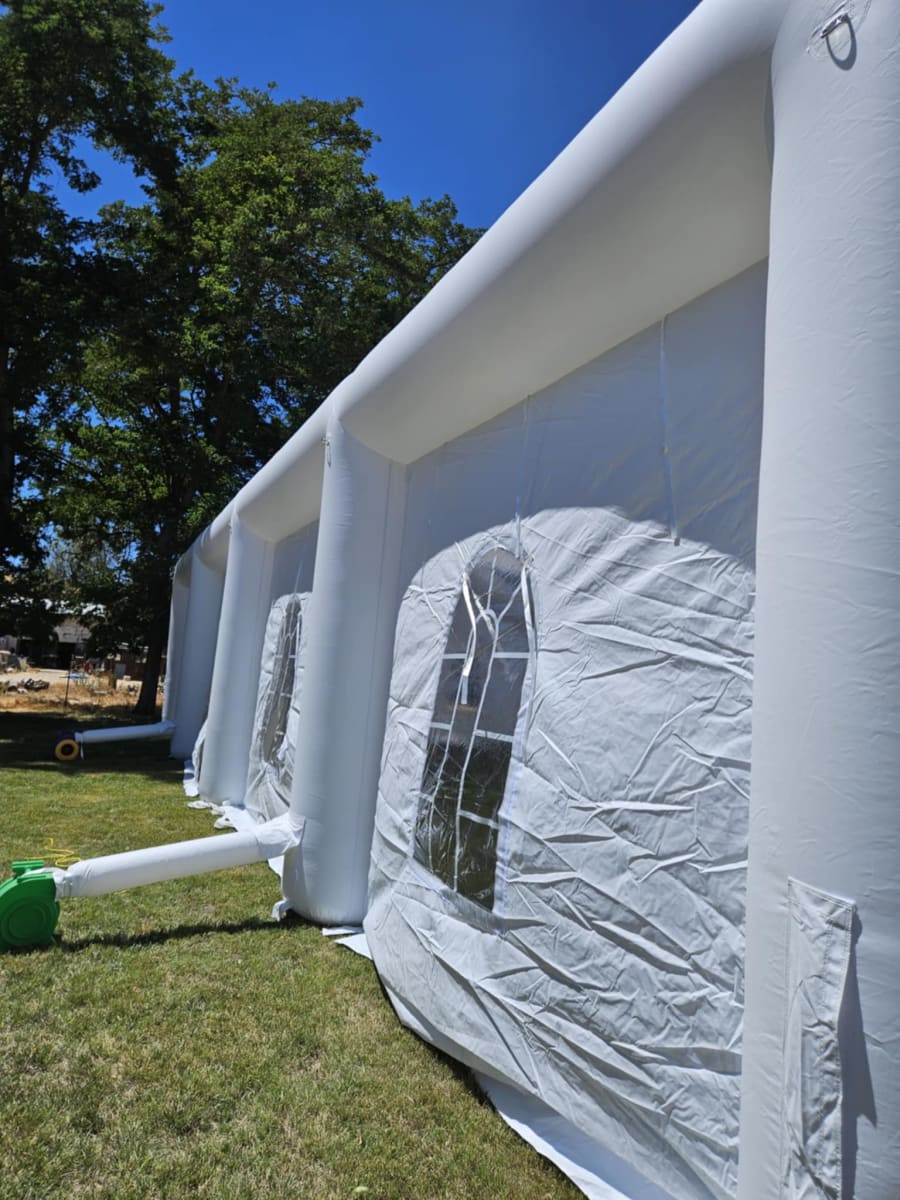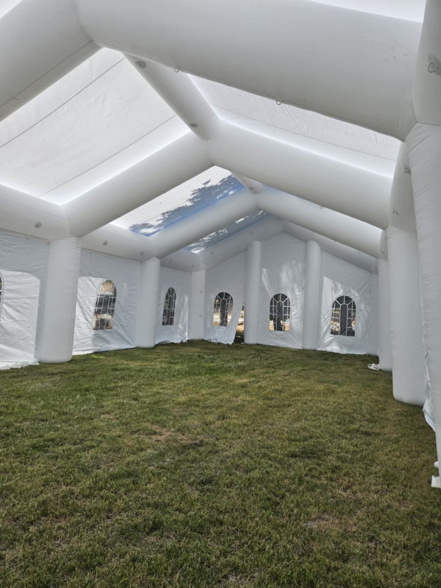 Make your next celebration unforgettable with our massive 60-foot inflatable event tent! Perfect for weddings, parties, corporate events, or festivals, this eye-catching white structure offers both style and practicality.