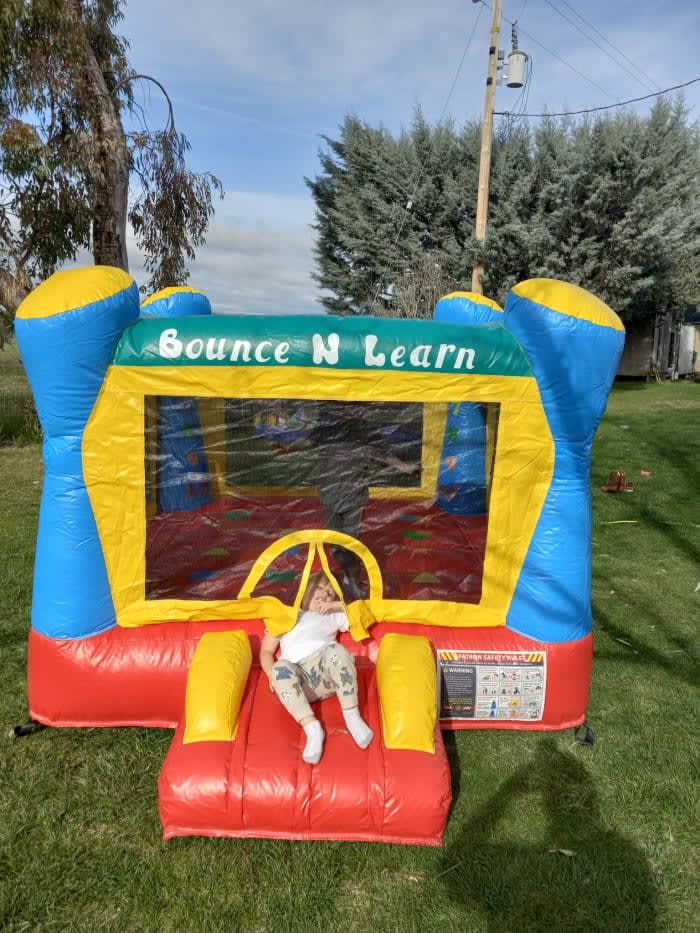 Introducing "THE PARTY PACK" - Your Ultimate Rental Party Experience! Choose between a Bounce House Combo or Water Slide for thrilling fun. Enjoy a Bounce N Learn Mini Bounce House, your choice of a slushy machine, a yard game, and 2 8-foot tables with 20 chairs. Unforgettable memories await – book now and let the celebration begin!
